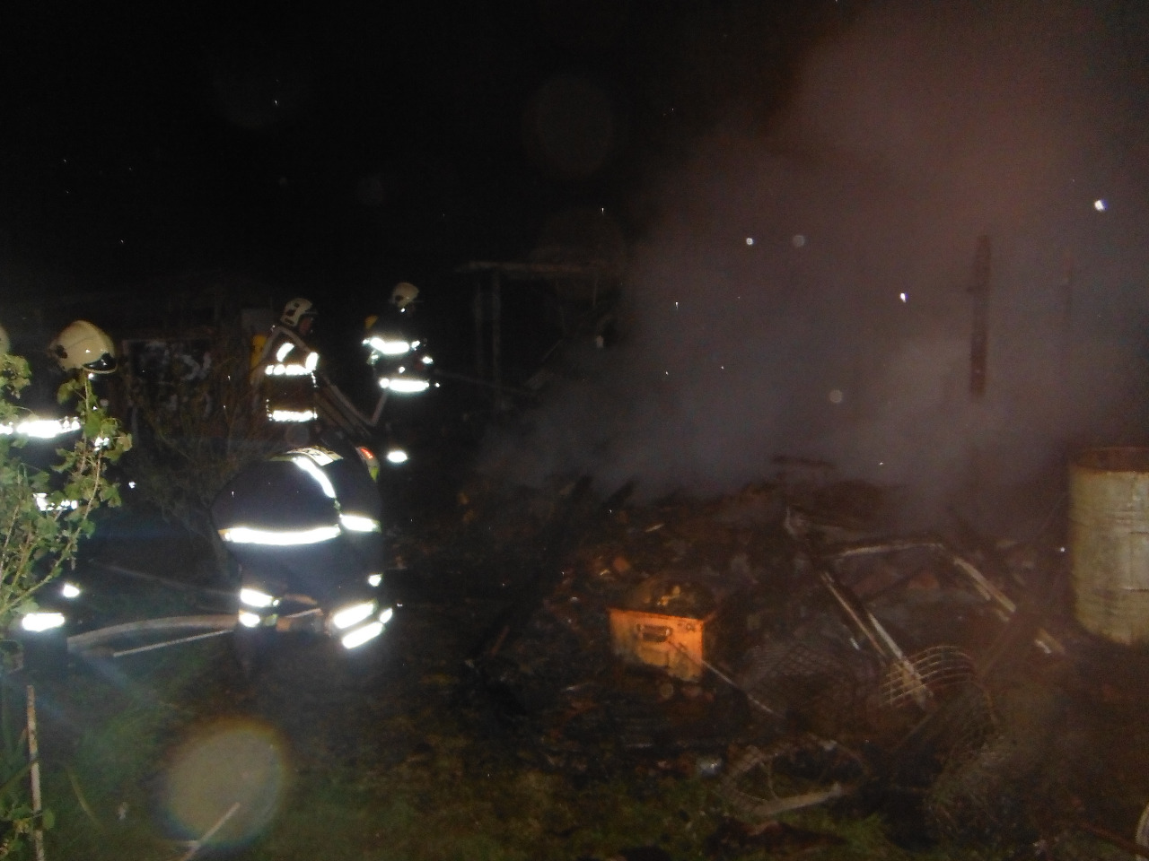 Jednotka vyjela na ohlášený požár zahradního domku do zahradkářské kolonie. Po příjezdu na místo události již zahradní domek dohoříval. Na hašení jsme použili jeden proud C, vodu jsme čerpali plovoucím čerpadlem z blízkého potoka.